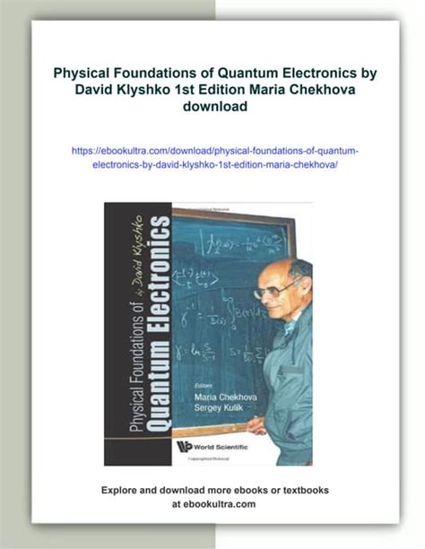 Classical Theory. at the University of Maryland, College Park, where he has taught courses in electronics, electromagnetics, quantum electronics, and loudspeaker .A quantum computer is a computer design which uses the principles of quantum physics to increase the computational power beyond what is attainable by a traditional computer. This .Enjoy An Entertaining and Free Pdf Book On Physics, The Science of Motion: Free download of the 5 pdf volumes of the Motion Mountain Physics Textbook. [D N Klyshko; Maria Chekhova; Sergey Kulik] -- This concise textbook introduces a graduate student to the various fields of physics related to the interaction between radiation and matter. Search.